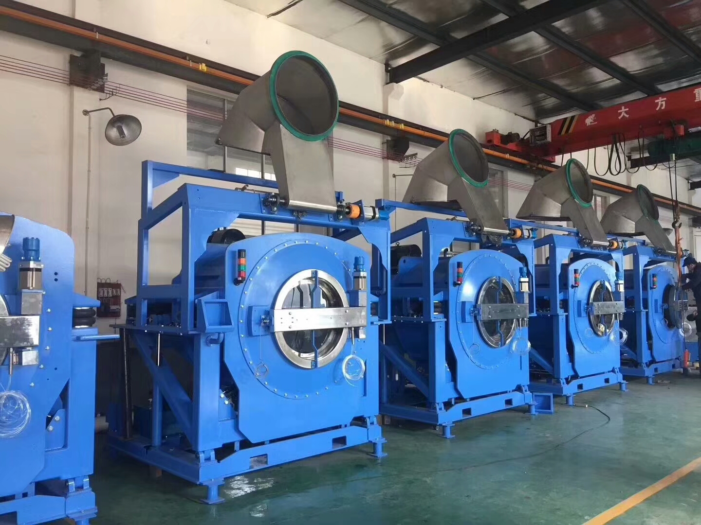 乾洗或水洗、烘乾、熨燙、包裝,就必須配置乾洗機、水洗機、烘乾機、熨燙臺及燙斗,以及衣物包裝機,同時還需配置一臺必備的輔助型設備,如蒸汽發生器,此設備對其他乾洗設備有輔助性作用,必不可少。